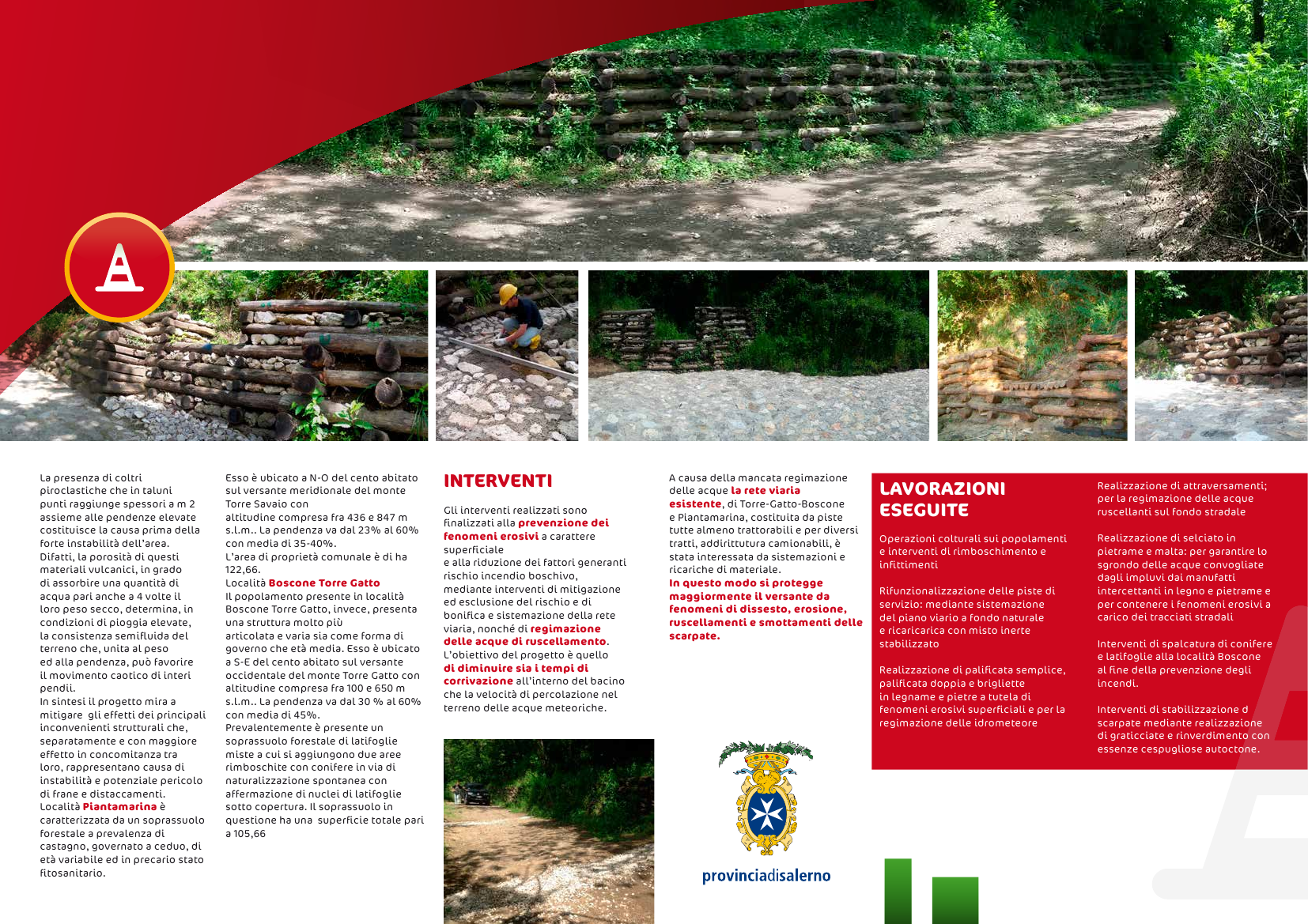 Gli interventi, che fanno parte del Progetto Speciale della Regione Campania per le opere di forestazione nelle aree a rischio idrogeologico, sono stati realizzati dalla Provincia di Salerno con i fondi del Ministero delle Politiche Agricole.